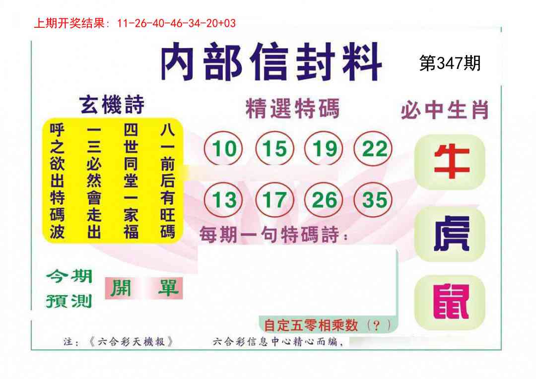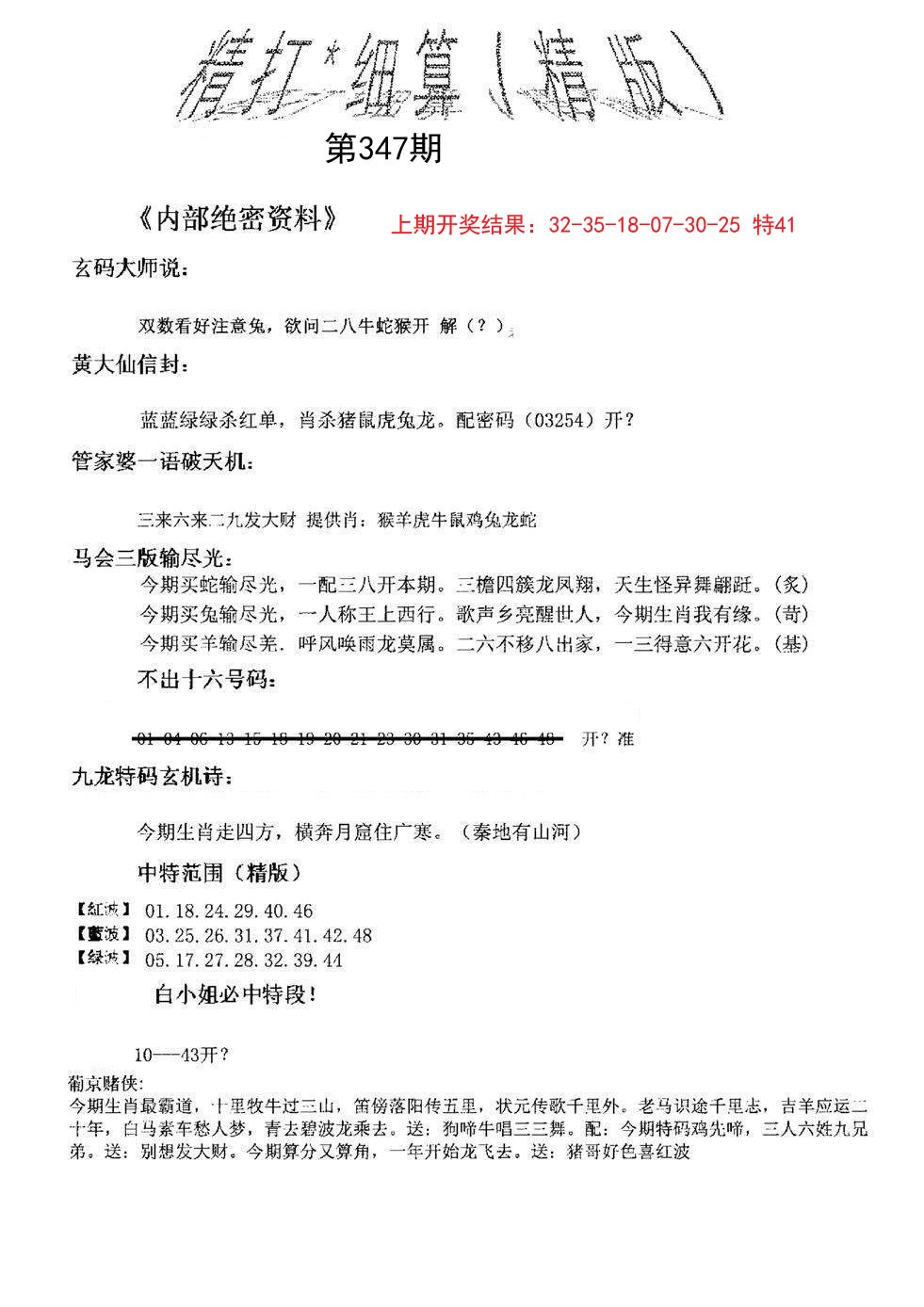 | 第347期 | 主:龙马狗 防:虎蛇鼠兔 | 开?00 |