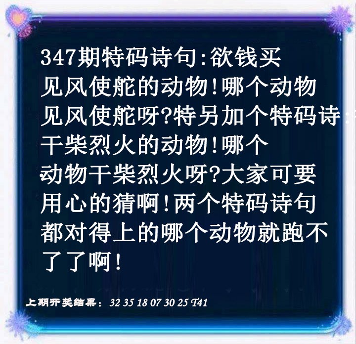 347期:【欲钱解特诗句】开?00(中) 猴兔虎龙发大财,本期特码出小数 |
